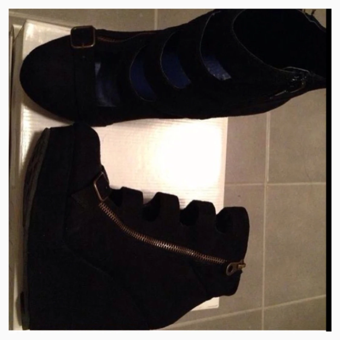 Använda inomhus 1 gång i knappt 1h. Snygga svarta kilklack med spänne och dragkedja. Från Scorett! Inköpspris 799kr. Portot betalar du