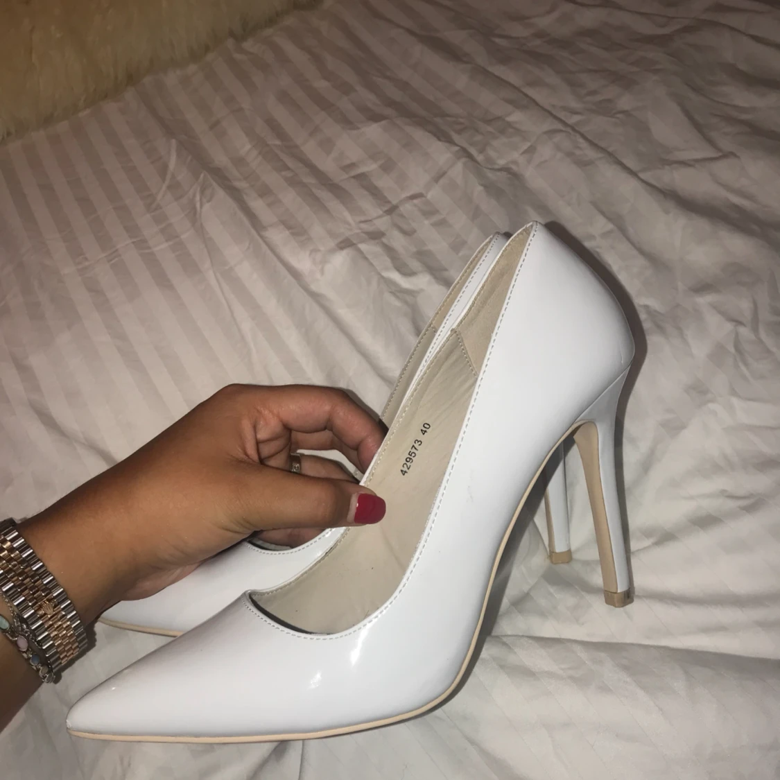 Vita pumps från Nelly. Nypris 350 kr, använda EN gång som helt nya. Lite små i storleken, så om du har 39 passar dessa dig perfekt!