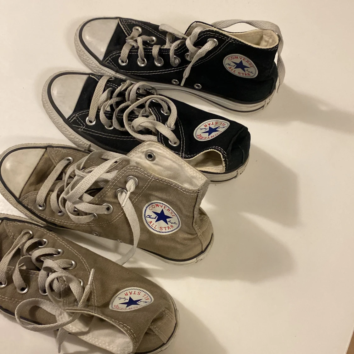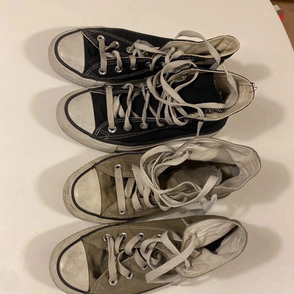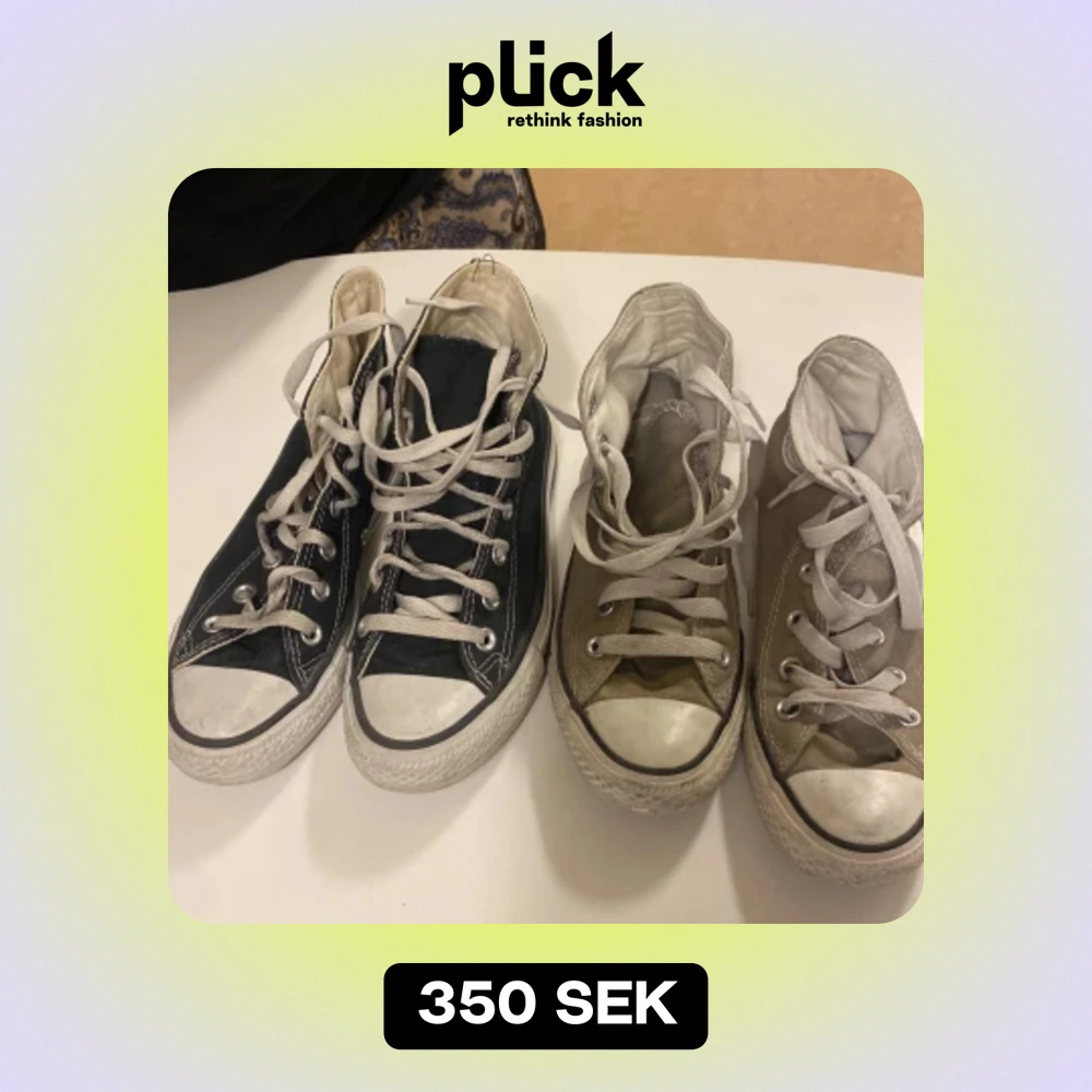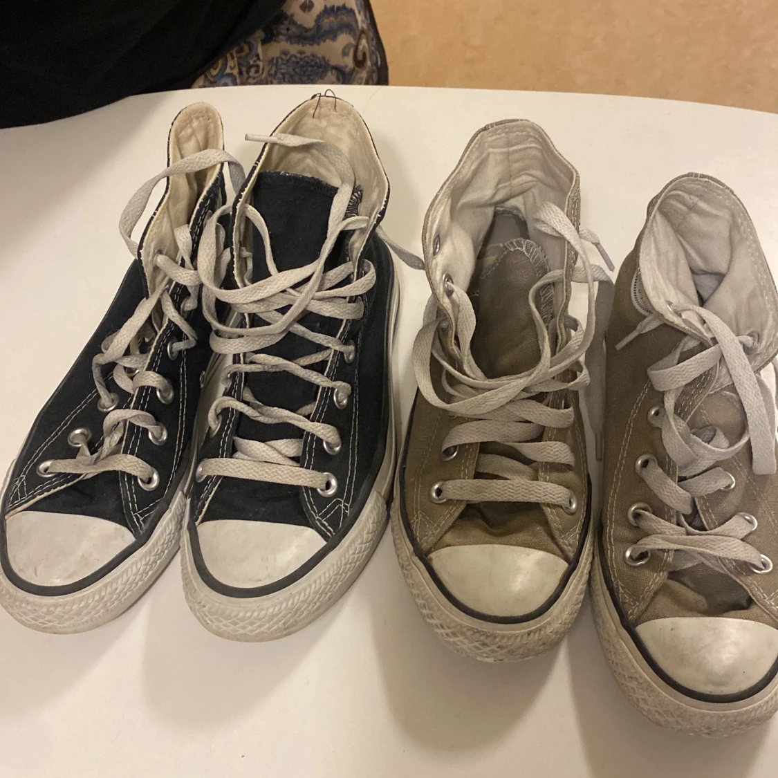 2 par välanvända Converse, men ändå i gott skick. Färg: ett par svarta och ett par gråa. Stl. 36 på båda. Säljer helst båda för 350 kr. Annars 200kr / par om du önskar köpa endast ett par.