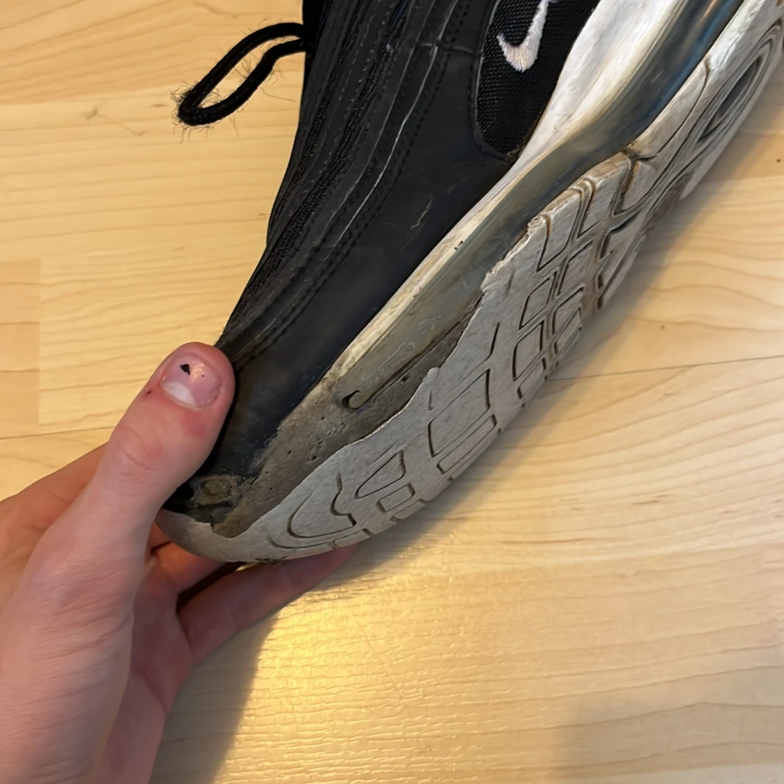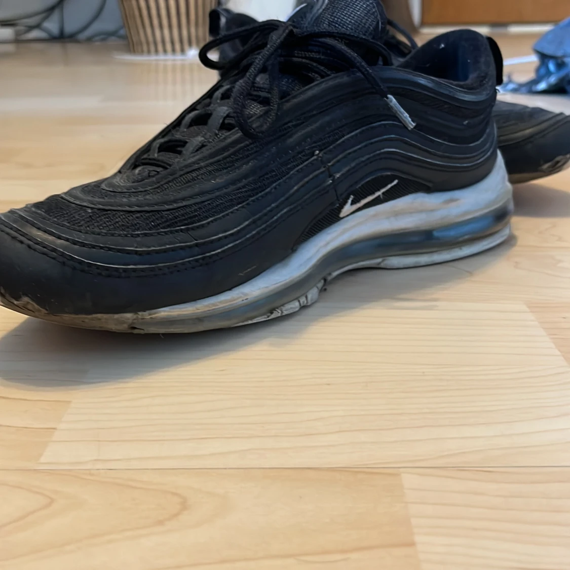 Köpta sen några år tillbaka på en high end secondhand, har hål i bubblan längst fram på vänster sida av skorna