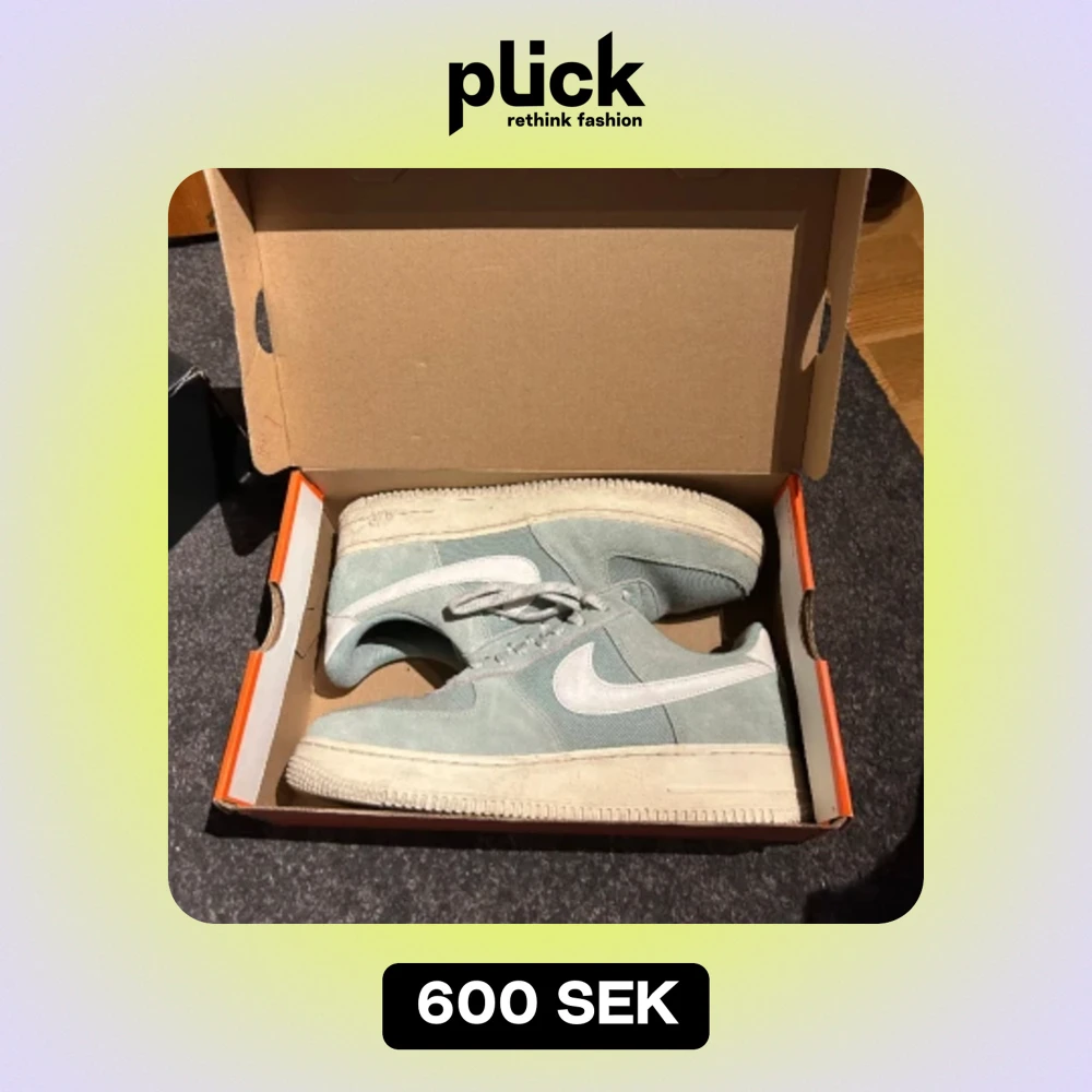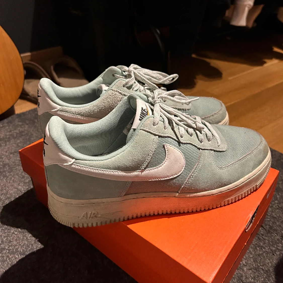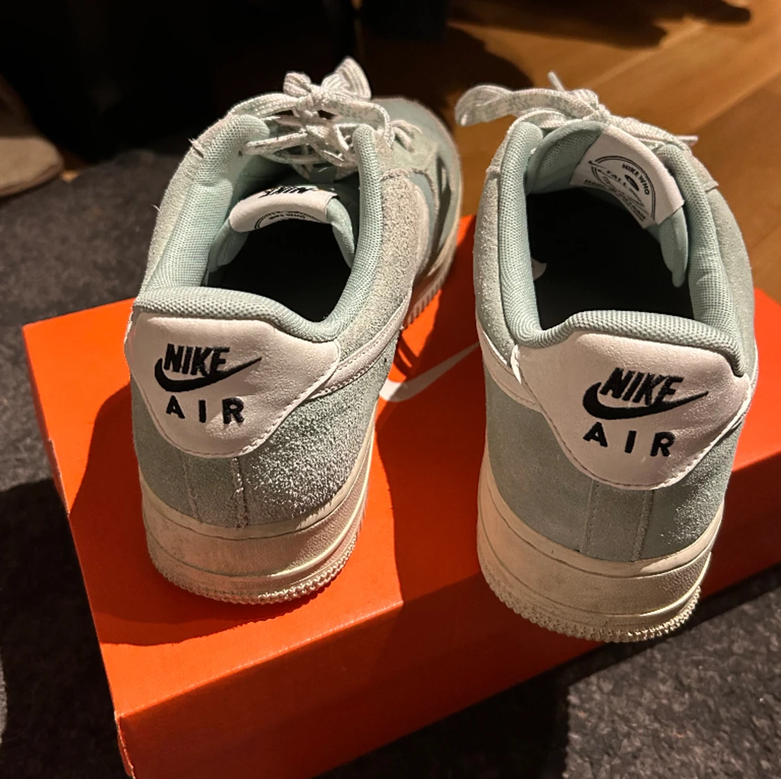 Air forces i ljusgrön mocka. Inget slitage förut lite smuts som går lätt att tvätta bort. Nypris cirka 1300, säljer för 400!