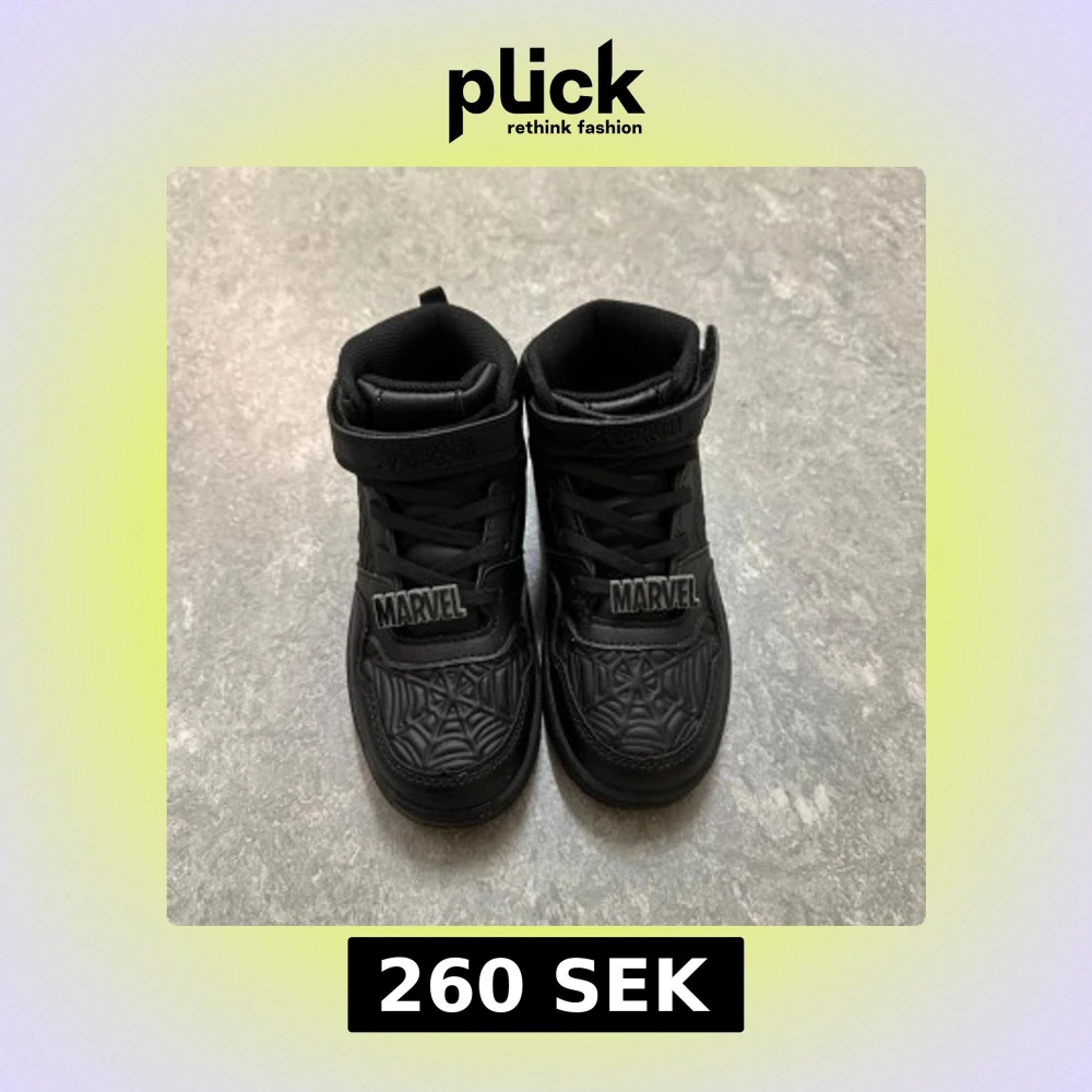 Coola svarta sneakers med hög design och spindelnätsmönster från Marvel. Skorna har snörning och kardborreband för extra säker passform. Perfekta för alla Marvel-fans! Använd en gång. passar till barn