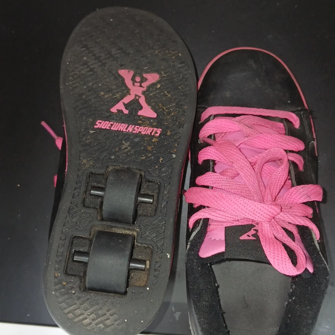 Coola svarta rullskor med rosa detaljer och snörning från Sidewalk Sports. Skorna har inbyggda hjul i sulan för att enkelt kunna rulla fram. Perfekta för den som vill kombinera sneakers med rullskor.