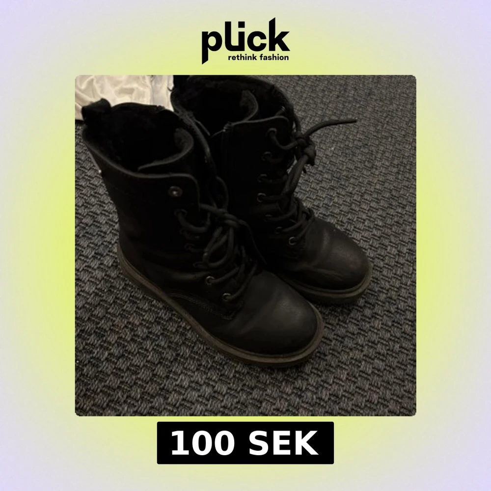 Säljer ett par svarta boots med snörning och robust sula. Perfekta för höst och vinter med en stilren design. De har en högre skaft och är gjorda i skinnliknande material.