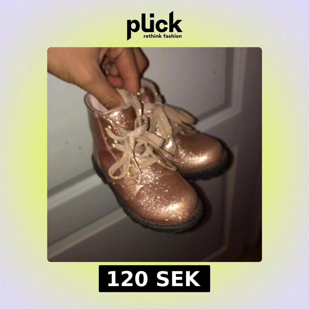 Säljer ett par glittriga rosa boots för barn med snörning. De har en robust sula och är perfekta för att lysa upp vilken outfit som helst. Storlek 23