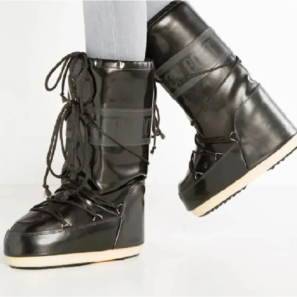 Säljer ett par jättefina moonboots, varsamt använda och en ovanlig svart färg! Storlek 35-38!