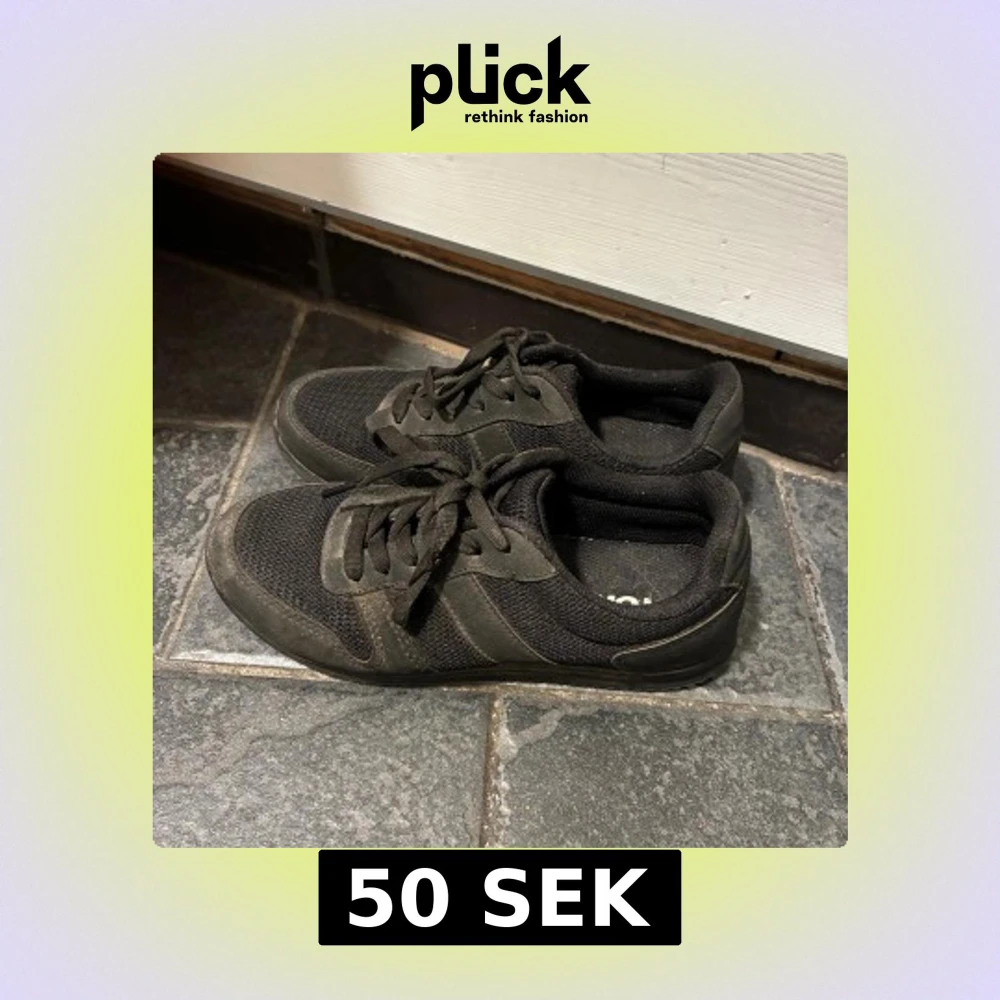Svarta fina sneakers som inte är mycket använda! Dom är smutsiga och jag har inte tvättat dom, hade på dom när jag kollade en motorcrosstävlig och gick i sanden så det ska nog gå bort!