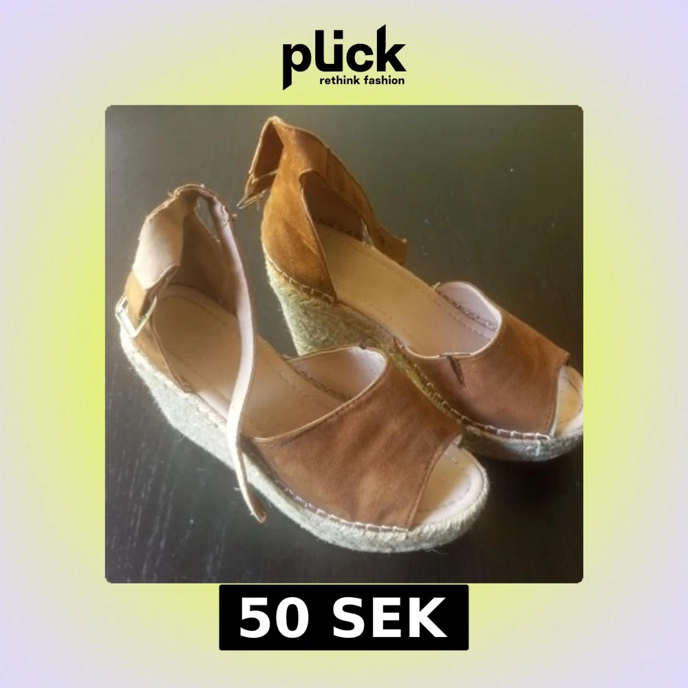 Snygga sandaler i brun mocka med öppen tå och hög platåsula i repimitation. Rem runt vristen med spänne för extra support. Perfekta för sommarens alla outfits och ger skön höjd utan att tumma på komforten.