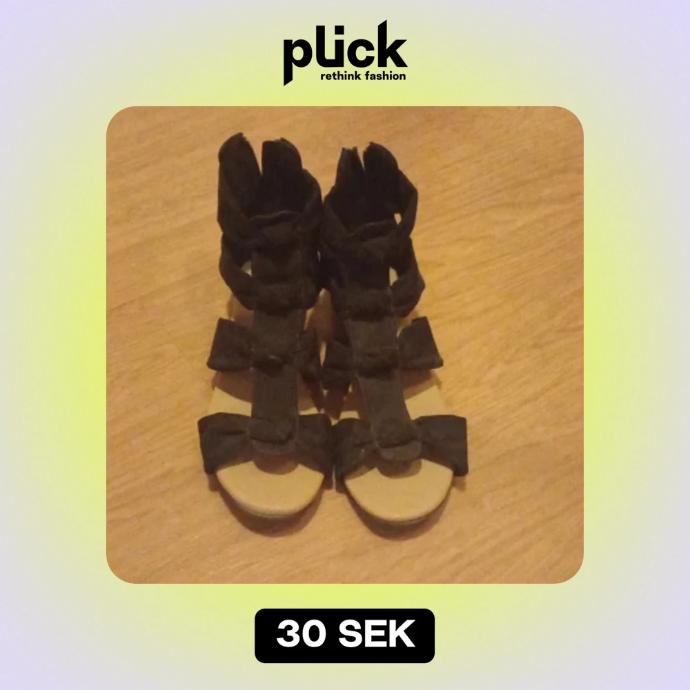 Säljer ett par svarta sandaler med flera söta rosetter. Perfekta för sommaren och ger en chic touch till vilken outfit som helst. De har en öppen tå och är bekväma att bära hela dagen.