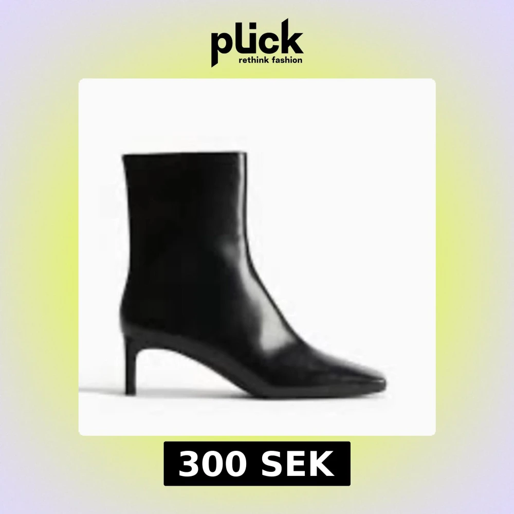 Snygga svarta boots i skinn med spetsig tå och medelhög klack. Använda en gång.