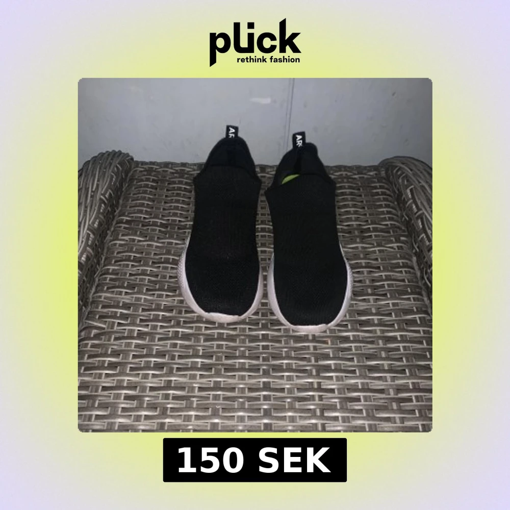 Snygga svarta slip-on sneakers från ARLINE med stickad ovandel och vit sula. Sidan har en cool neongul detalj som ger skorna en sportig vibe. Perfekta för dig som gillar stilrena men ändå unika sneakers. Lätta att ta på och av tack vare stretchig resår.
