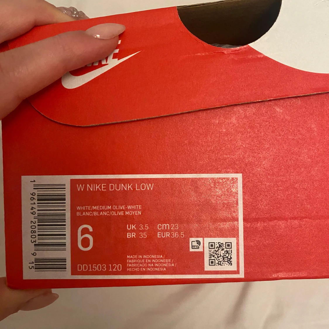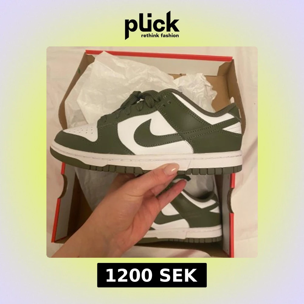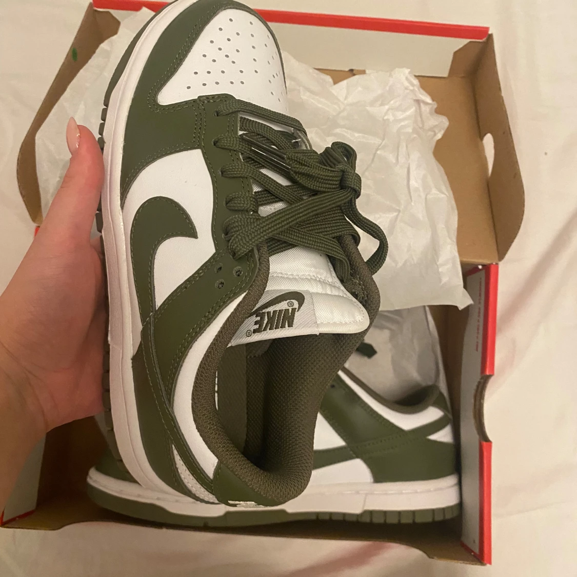 Säljer dessa helt nya och oanvända ”Nike Dunk Low, Medium Olive-White”. Tveka inte att skriva om du har några frågor💗