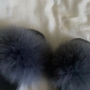 Säljer ett par helt oanvända pälstofflor med äkta päls, mörkgrå.