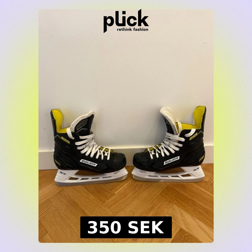 Säljer ett par Bauer supreme s35 hockeyskridskor i svart med gula och vita detaljer. Skridskorna är i storlek 36 och i mycket bra skick.