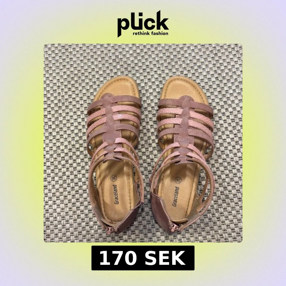 Snygga rosa sandaler från Graceland med flera smala remmar och öppen tå. Remmarna har en lätt glittrig finish och sandalerna har en platt sula. Perfekta för varma dagar och ger en cool touch till din sommaroutfit.