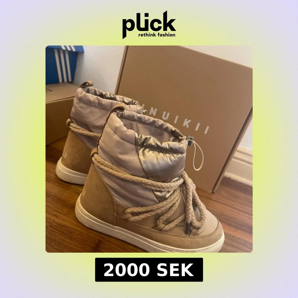 Snygga beige boots från Inuikii med chunky snörning och vadderat skaft i glansigt syntetmaterial. Skorna har en platt sula och detaljer i mocka, perfekt för kalla dagar. Stilsäkra och unika med sin kombination av material och grova rep-senor.