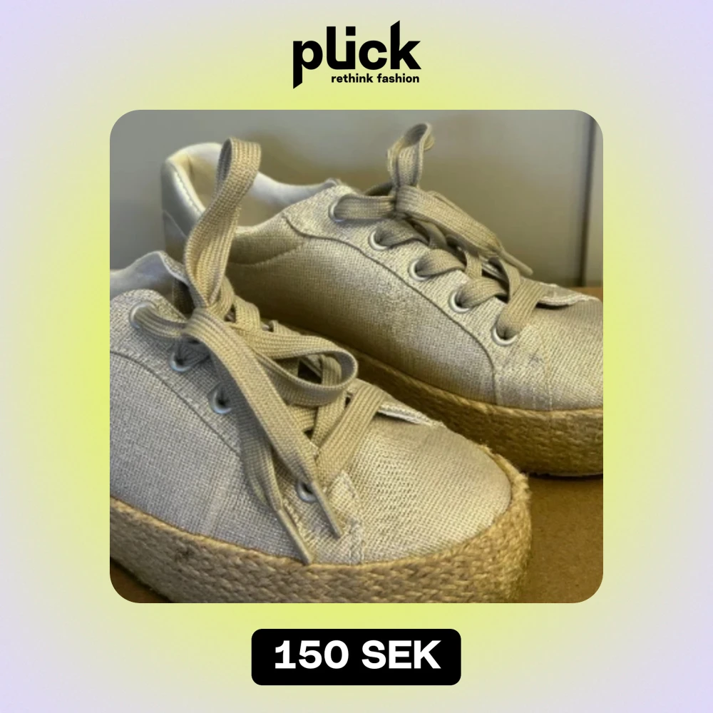 Silvriga sneakers med flätade detaljer i jute. Nästan helt oanvända.