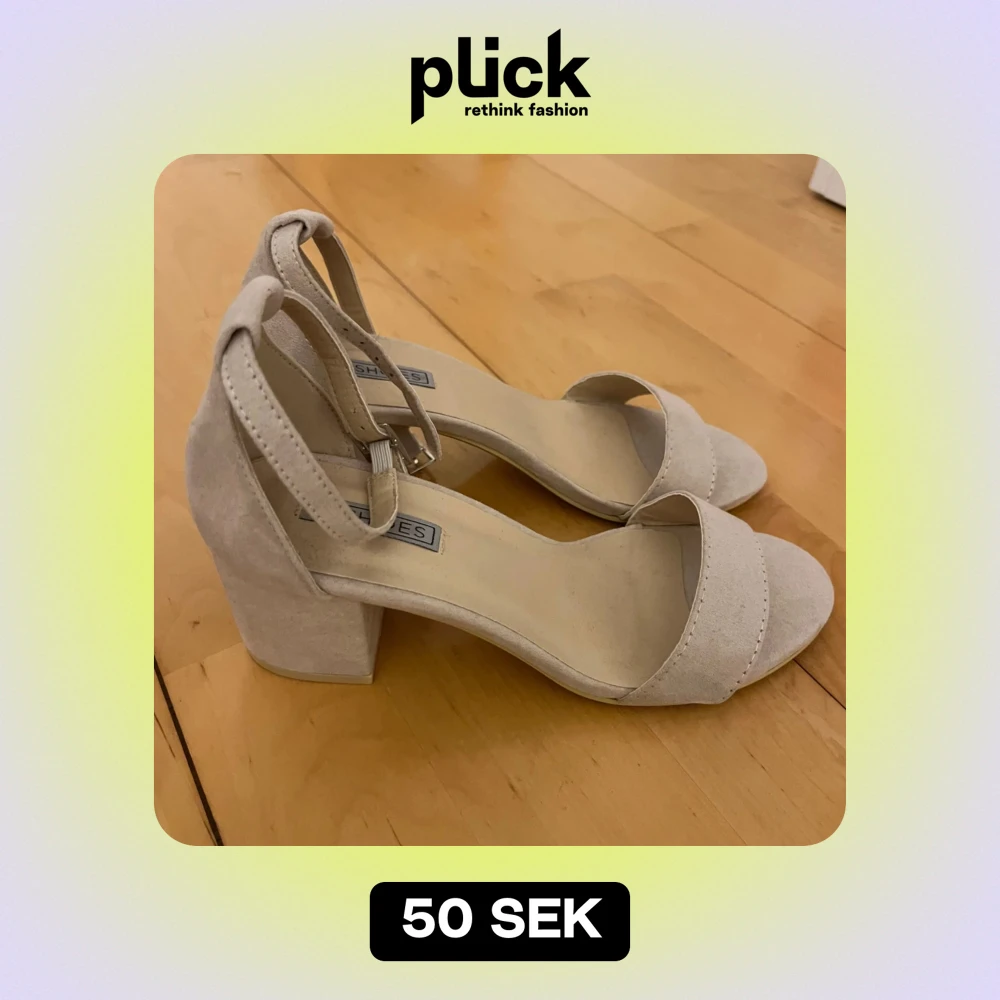Snygga beige sandaler med klack från Nelly Shoes. De har en stilren design med öppen tå och justerbart spänne runt ankeln. Storlek 36.