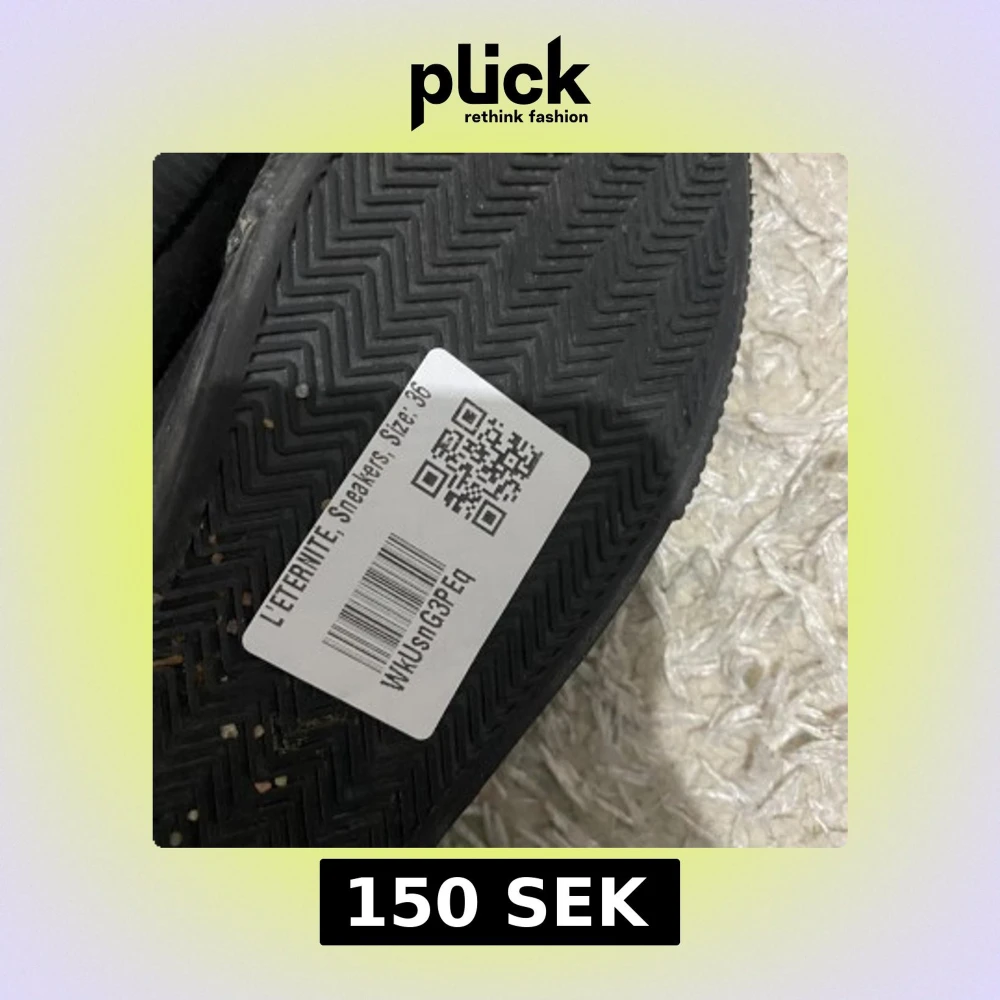 Svarta sneakers från L'Éternité x H&M Divided i storlek 36. Klassisk låg modell med snörning, rund tå och platt sula. Ovandel i textil med diskret logga på sidan. Perfekta för en avslappnad och stilren look.