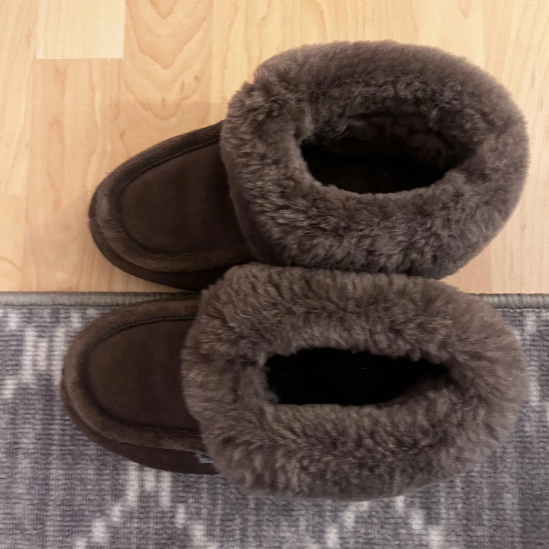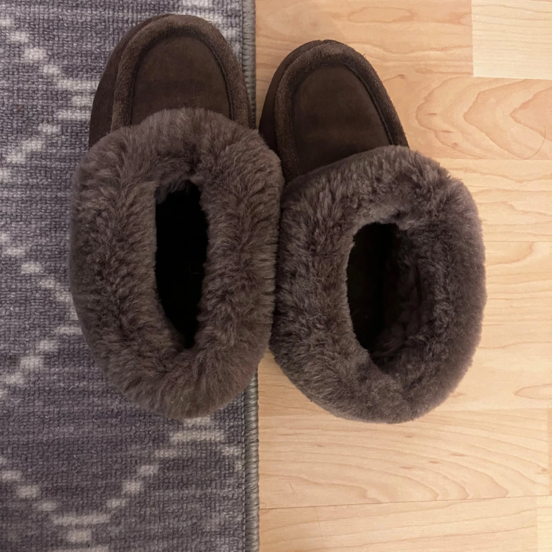 Fårskinnstofflor med en hård sula under passar både i hem och utomhus i vardagen. Väldigt varma i storlek 36🩷