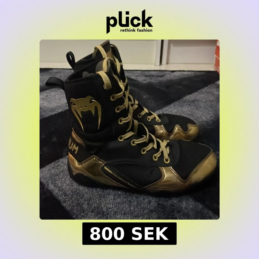 Säljer ett par svarta och guldiga boxningsskor från venum storlek 36 de är ganska nya och i bra skick nypris 1.800kr mitt pris 800kr