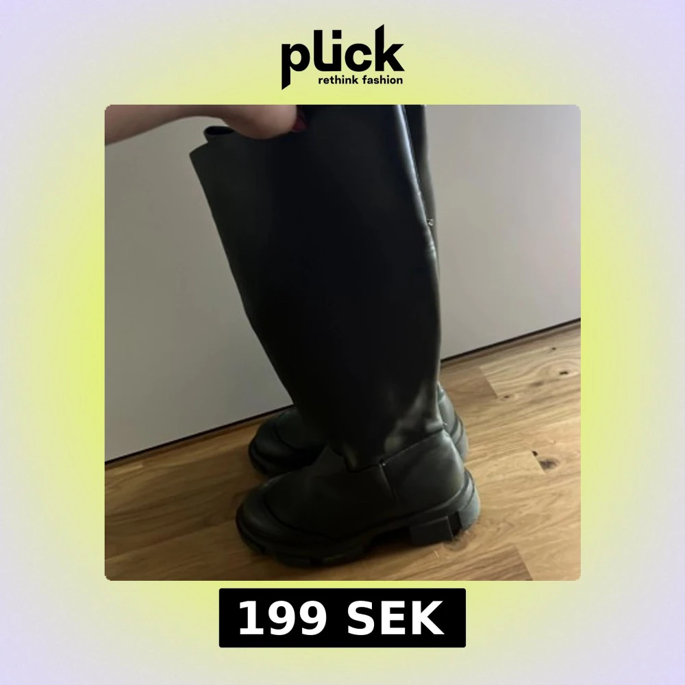 Snygga gröna höga boots med chunky sula och rund tå. Tillverkade i skinnimitation och perfekta för att lyfta din höst- eller vinterstil. Klassisk och stilren design som passar till många outfits.
