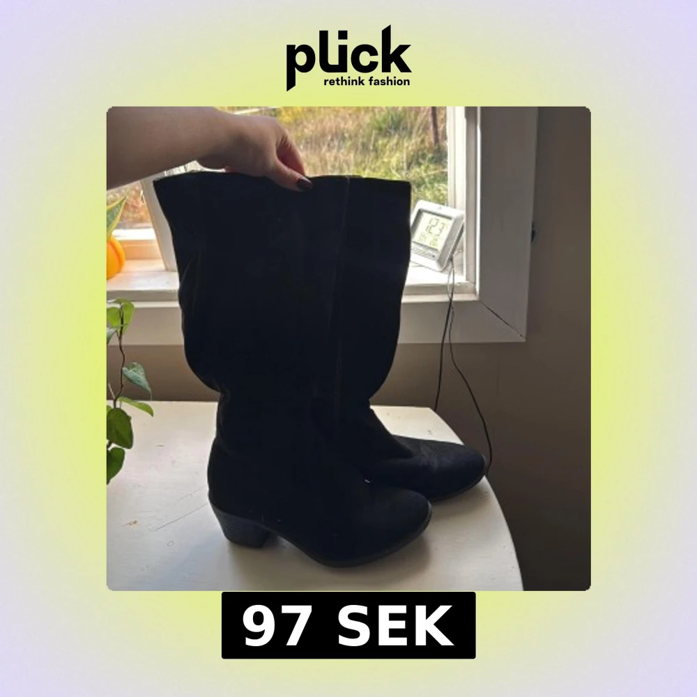 Säljer ett par svarta stövlar i mocka med rund tå och låg klack. Stövlarna har dragkedja på insidan och en klassisk, enkel design som funkar till många outfits. Perfekta för höst och vinter när du vill ha en stilren look.
