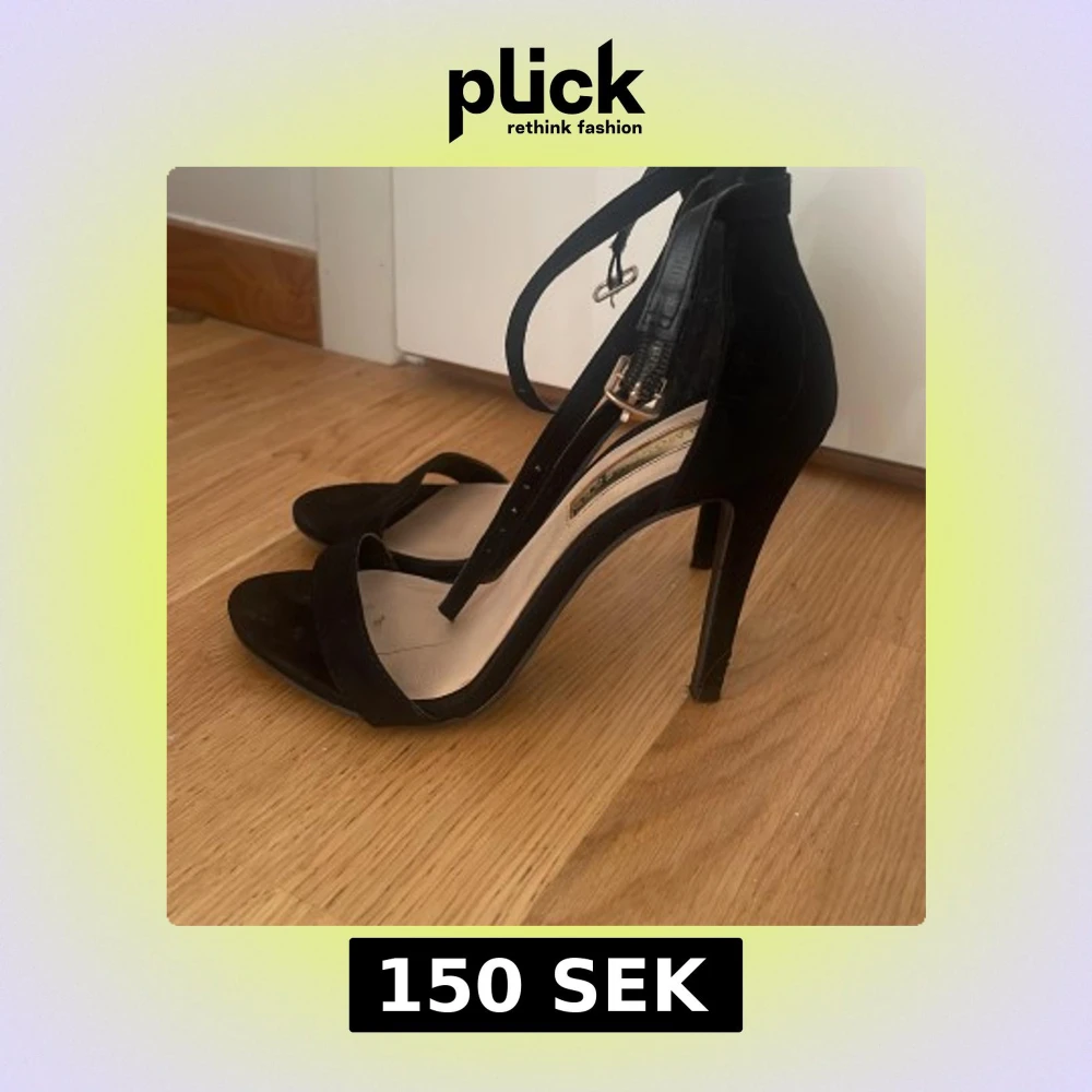 Stilrena svarta pumps med hög klack från Atmosphere. Skorna har öppen tå, smal rem över foten och justerbar ankelrem med spänne. Ytan är i mockaliknande material och innersulan är ljus. Perfekta för dig som vill ha en klassisk och elegant look.
