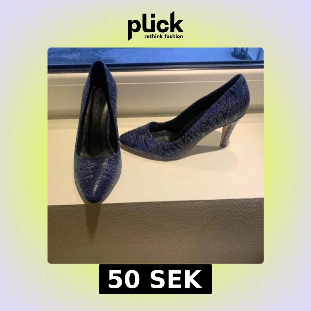 Snygga blå pumps med glittrigt mönster och spetsig tå. Perfekta för en kväll ute eller en speciell tillställning.