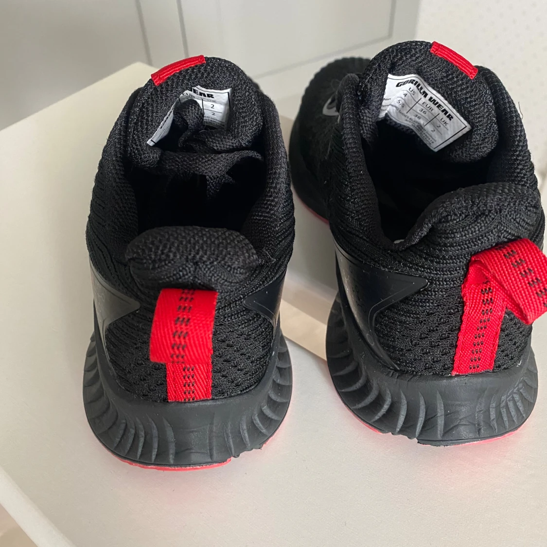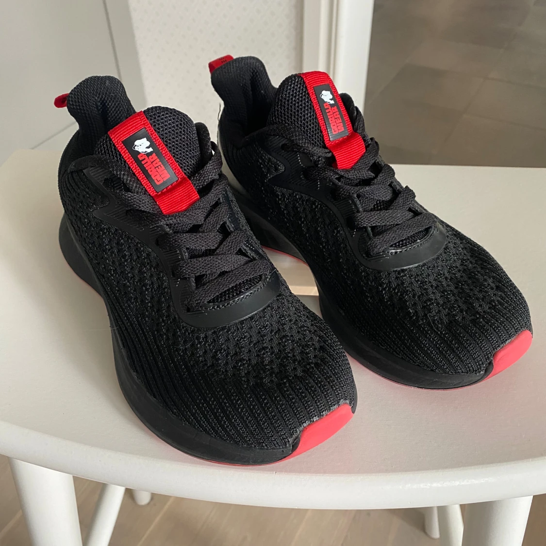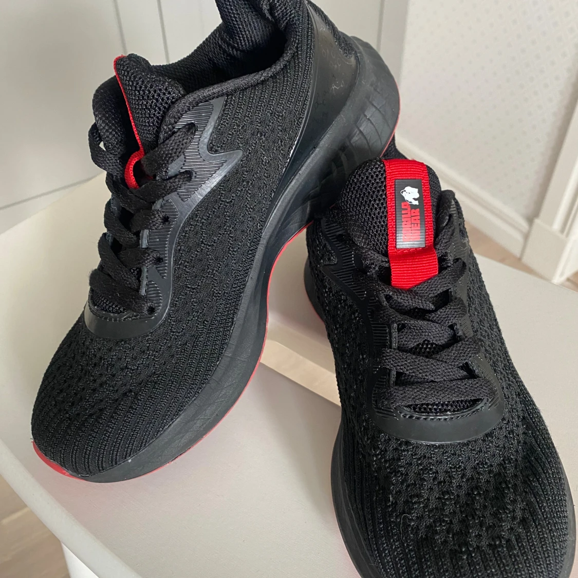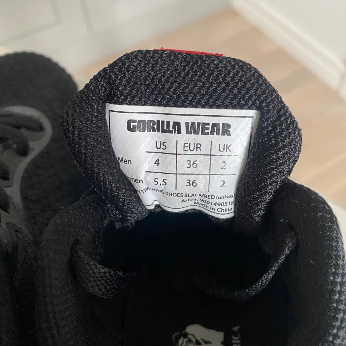 Allsidig träningssko från Gorilla Wear med röda detaljer och snörning. En mycket lätt sko med ventilerande ovandel. Förstärkt häl för bättre stabilitet. Rymlig passform, så den är större än en normal 36:a. Då den är något för stor säljer jag den, endast använd ett 10-tal gånger. Mycket skön och lätt sko annars! Nypris 799:-