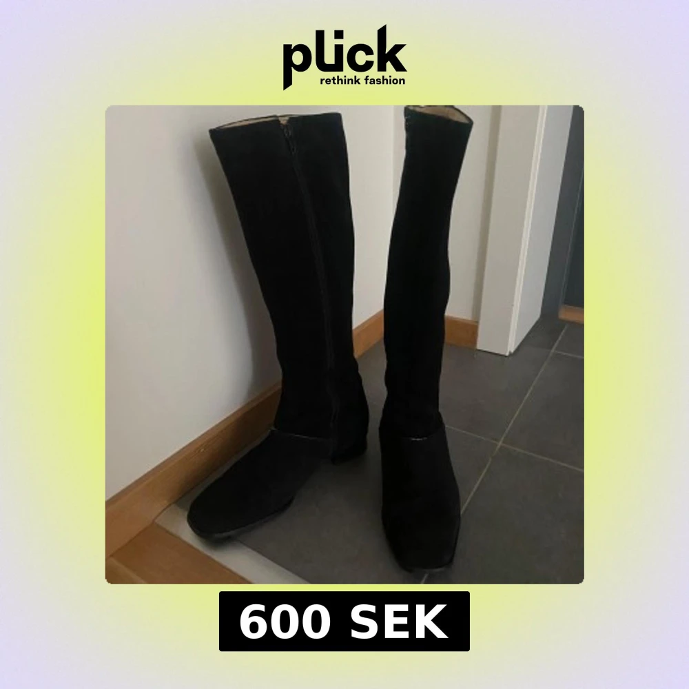 Snygga svarta stövlar i mocka med dragkedja längs sidan. Perfekta för höst och vinter, dessa stövlar ger en stilren look och är lätta att matcha med olika outfits. Pertti Palmroth.