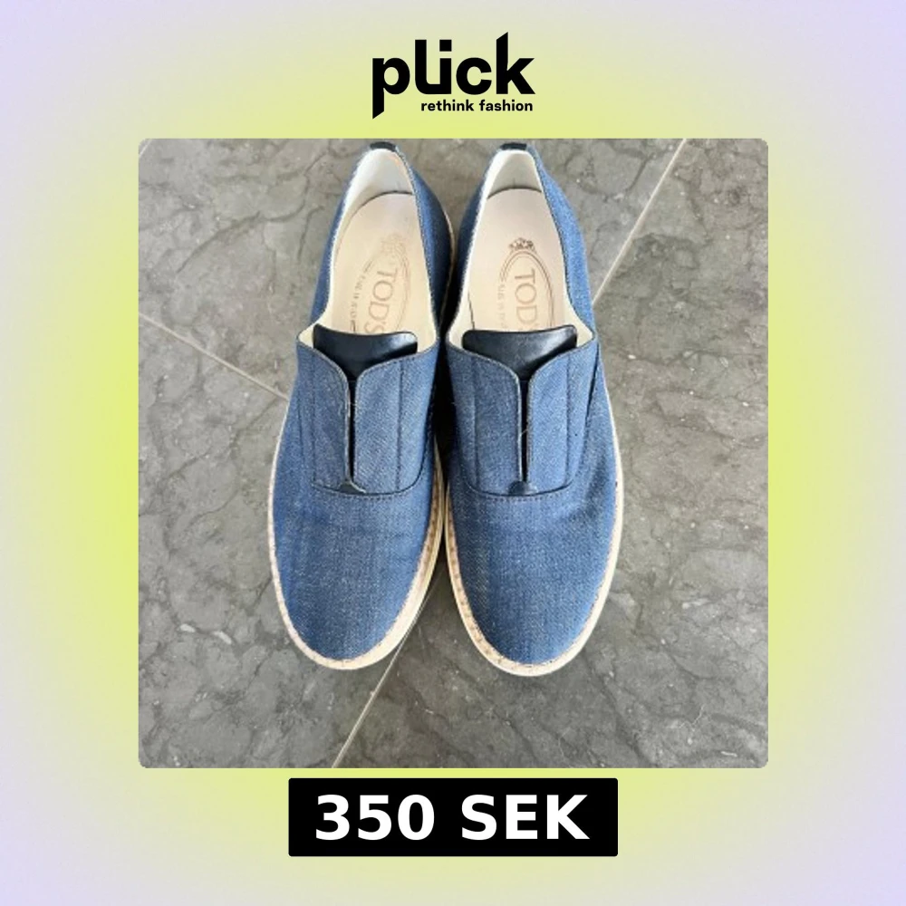 Snygga loafers från Tod's i blått jeanstyg med vita sulor och flätad detalj runt kanten. Skorna har en stilren design utan snörning och inslag av svart skinn vid öppningen. Perfekta för dig som gillar en avslappnad men trendig look.