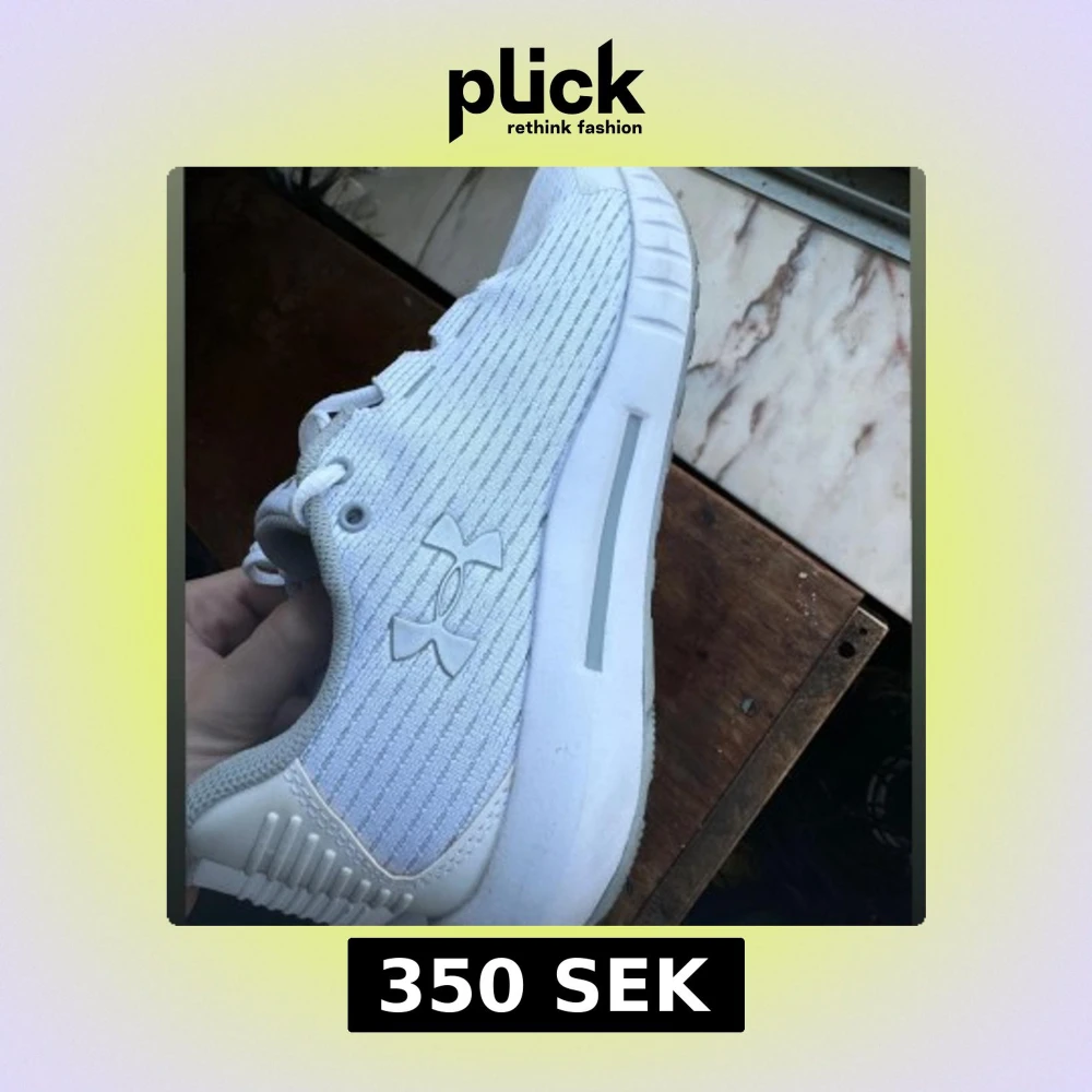 Snygga vita sneakers från Under Armour med ribbad textur och snörning. Perfekta för träning eller vardagsbruk. De har en rund tå och är tillverkade i syntetmaterial för extra komfort och hållbarhet.