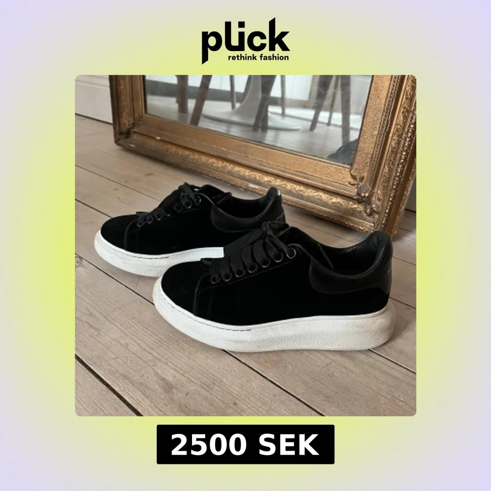 Snygga svarta sametts sneakers från Alexander McQueen med vit sula och klassisk snörning. Väldigt bra skick.