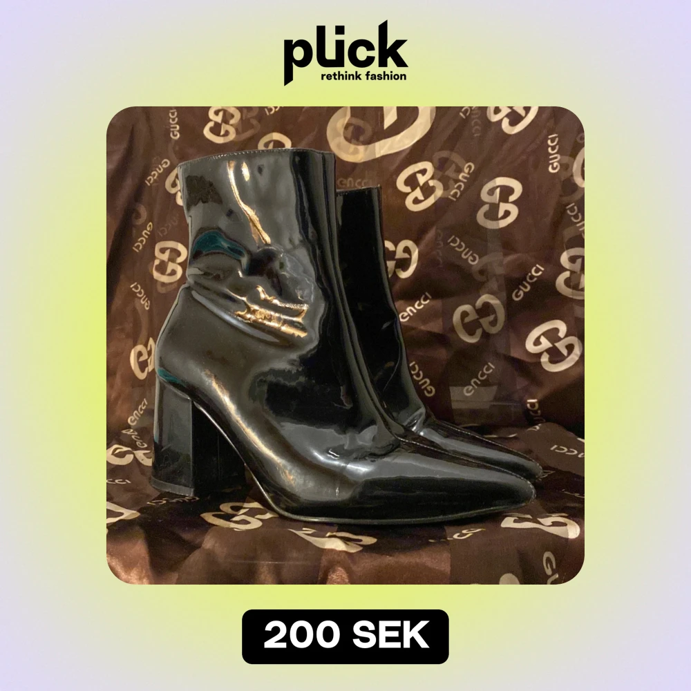 Snygga svarta stövletter i lackat material från Gina tonic. De har en elegant spetsig tå och en stabil klack som ger en chic look. Perfekta för både fest och vardag. Dragkedja på sidan för enkel på- och avtagning. Storlek 37.