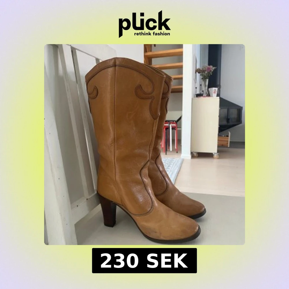 Snygga bruna cowboy boots med dekorativa sömmar och hög klack. Klassisk westernstil med rund tå och stilren design, perfekta för att lyfta din outfit. Köpta på vinted, jag har endast använt dom vid ett tillfälle och dom visar inte på mycket användning alls! Storlek 37 men kan både passa 36 och 37. Sista bilden visar på defekter på undersulan! Hittar inget märke heller!