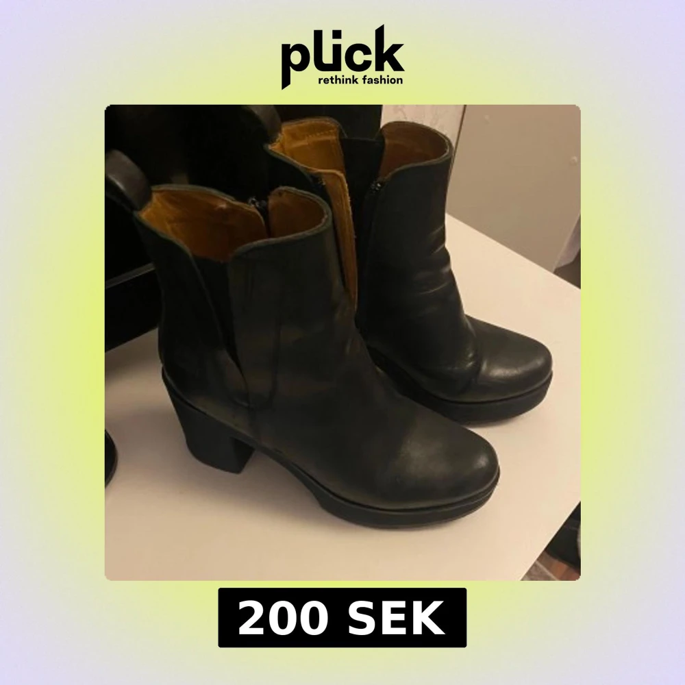 Snygga svarta boots i skinn med rund tå och kraftig klack. Dragkedja på insidan för enkel påtagning och klassisk siluett. Perfekta för dig som gillar en stilren look med lite edge. Passade inte min storlek!