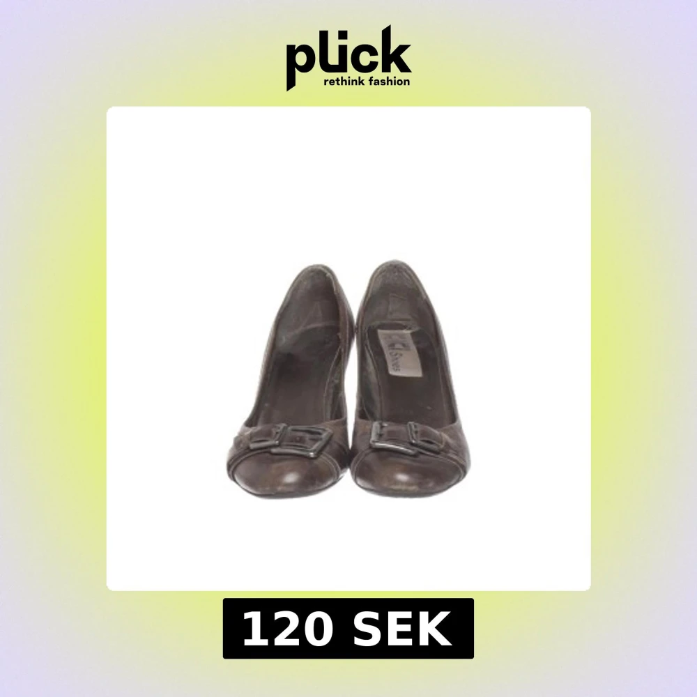 Snygga bruna pumps från KIKI Shoes med rund tå och dekorativa spännen framtill. Skorna har en klassisk hög klack och har en stilren och unik design. Köpte dem begagnade men de var tyvärr för stora för mig så har inte kunnat använda dem! De har några defekter som små repor, kan ses på sista bilderna, annars är de som nya! Något stora i storleken, tror de passar 37,5-38 bättre.
