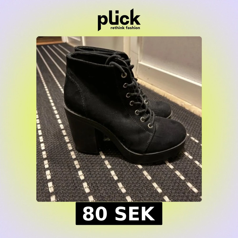 Snygga svarta boots med hög klack och snörning. Perfekta för att ge lite extra höjd och stil till din outfit.