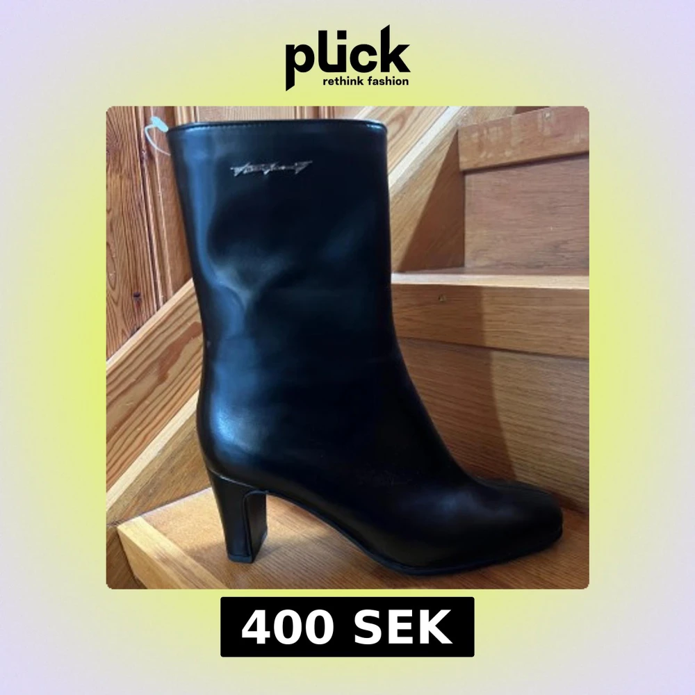 Säljer ett par stilrena svarta boots i skinn med medelhög klack och rund tå.