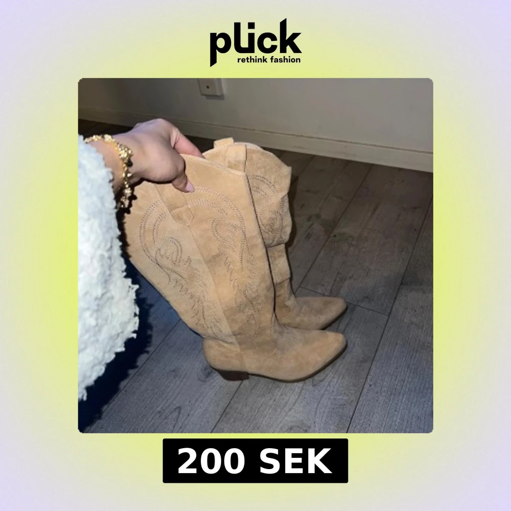 Snygga cowboy boots i beige mocka med dekorativa sömmar och spetsig tå. Skorna har en stadig låg klack och klassisk western-form som ger en cool vibe till outfiten. Perfekta för dig som vill sticka ut med trendiga boots.