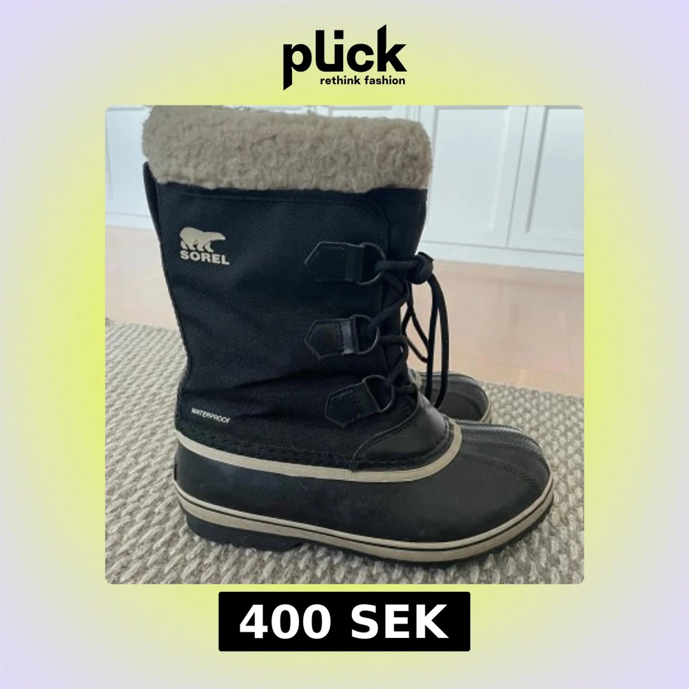 Säljer ett par svarta vinterstövlar från Sorel med snörning och varm foder. Stövlarna är vattentäta och har en robust sula för bra grepp. Perfekta för kalla och snöiga dagar.