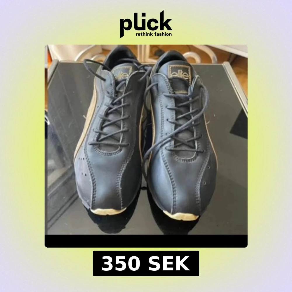 Snygga svarta sneakers från Elite med beige detaljer och snörning. Skorna har en rund tå och en unik sula med mönster för extra grepp. Perfekta för en stilren look.
