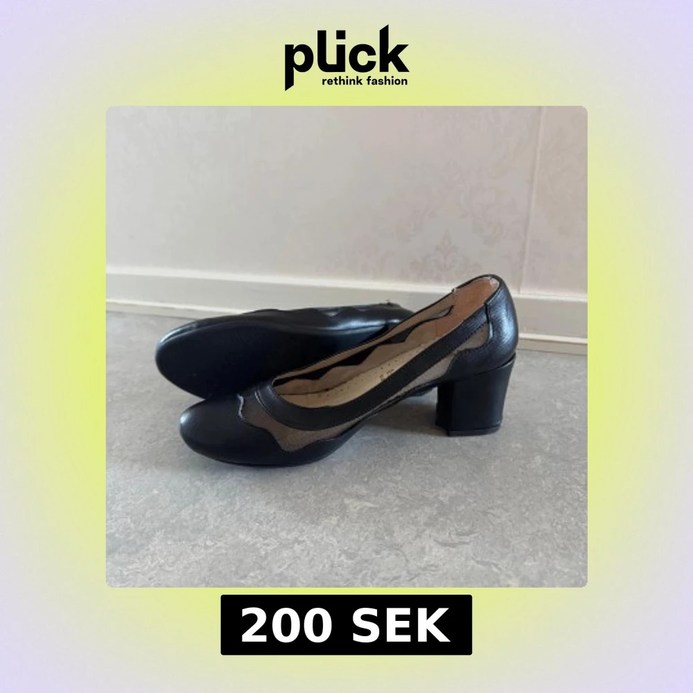Säljer ett par svarta pumps med rund tå och blockklack från Marlop. Skorna har snygga meshdetaljer längs sidorna och ovandelen, vilket ger en modern look. Tillverkade i syntetmaterial med en klassisk design. Har aldrig använts!