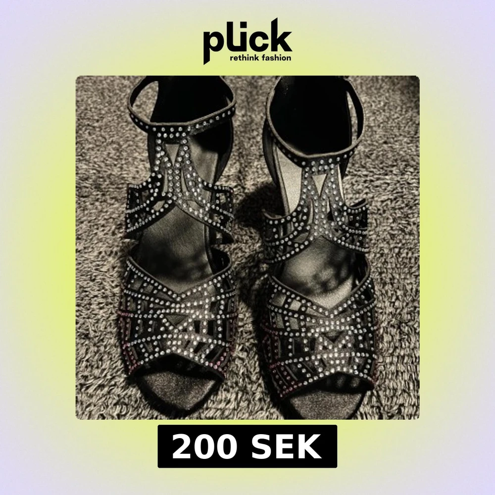 Snygga svarta sandaler med klack och glittriga detaljer. Skorna har en öppen tå och dragkedja baktill för enkel påtagning. Perfekta för en festlig kväll!