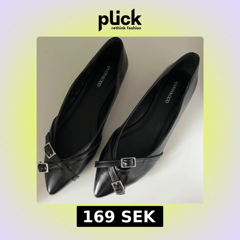 Eleganta svarta ballerinaskor från Even&Odd med spetsig tå och dekorativa spännen. Perfekta för en stilren look.