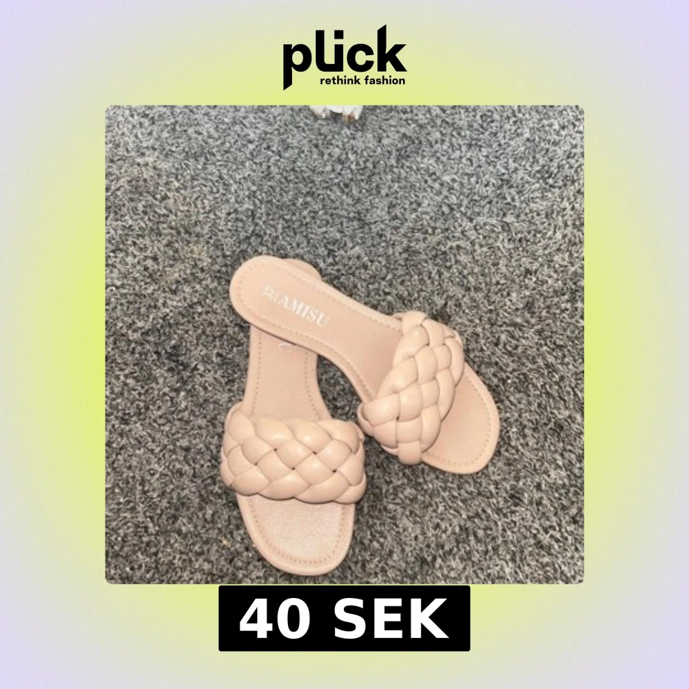 Snygga beige sandaler från Amisu i storlek 37. De har en bred, flätad rem över foten och platt sula. Perfekta för varma dagar och ger en trendig touch till din outfit.