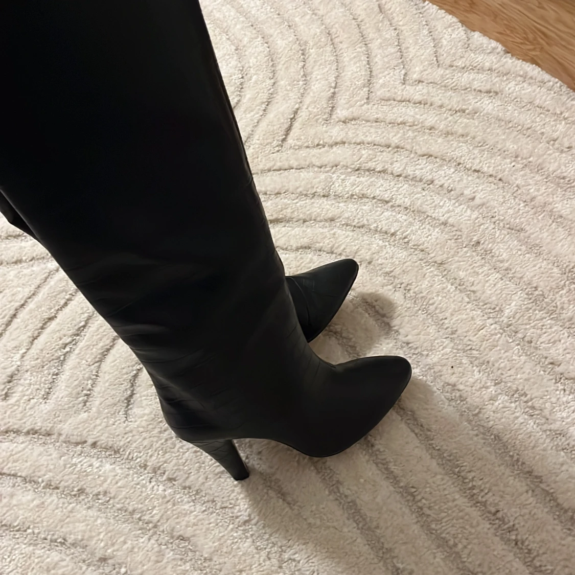 Stövlar med klack från H&M i läderimitation. Aldrig använda