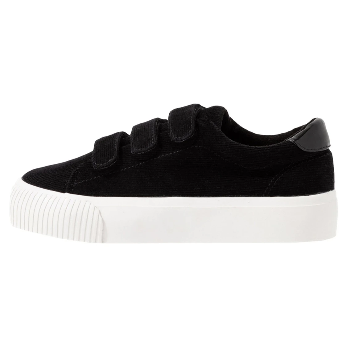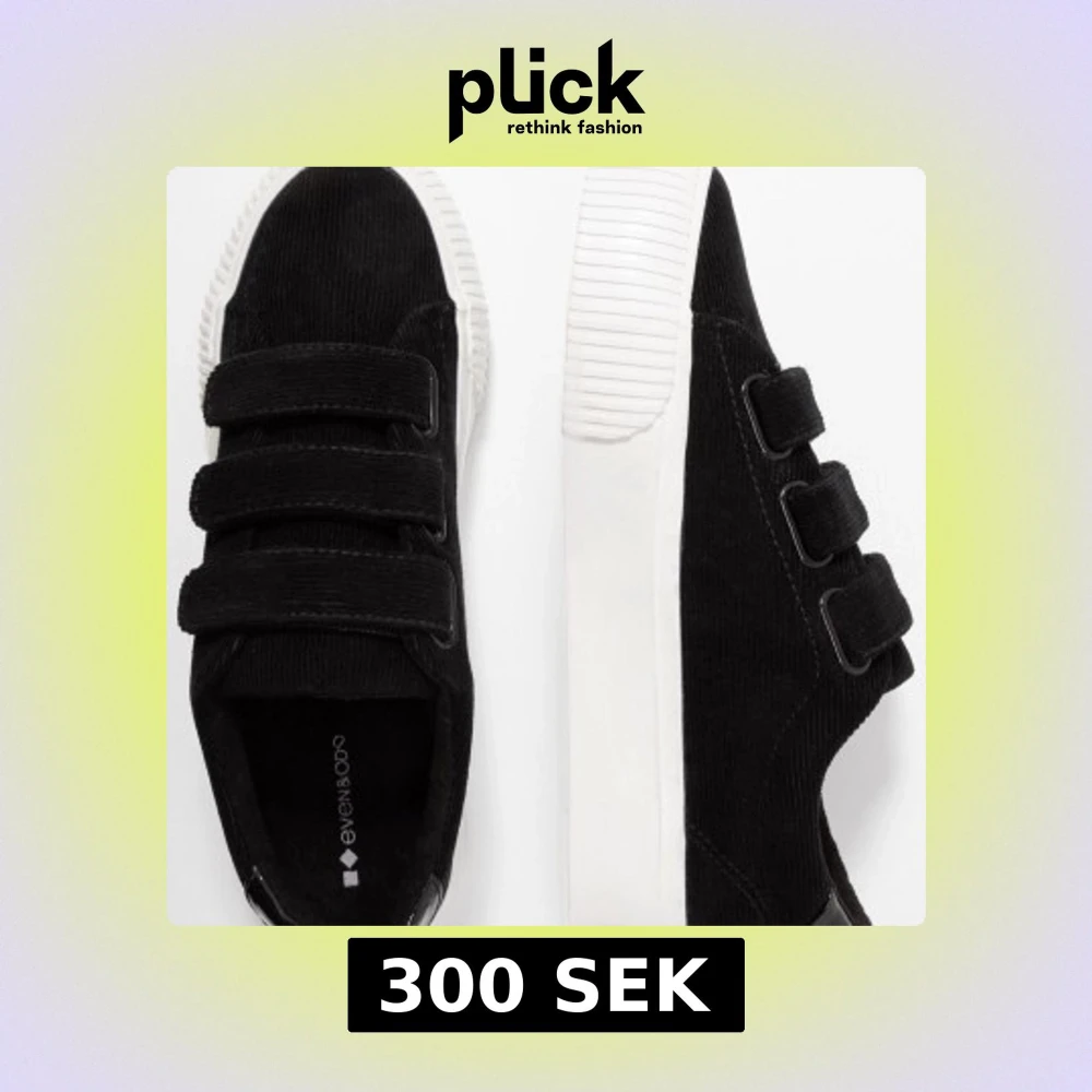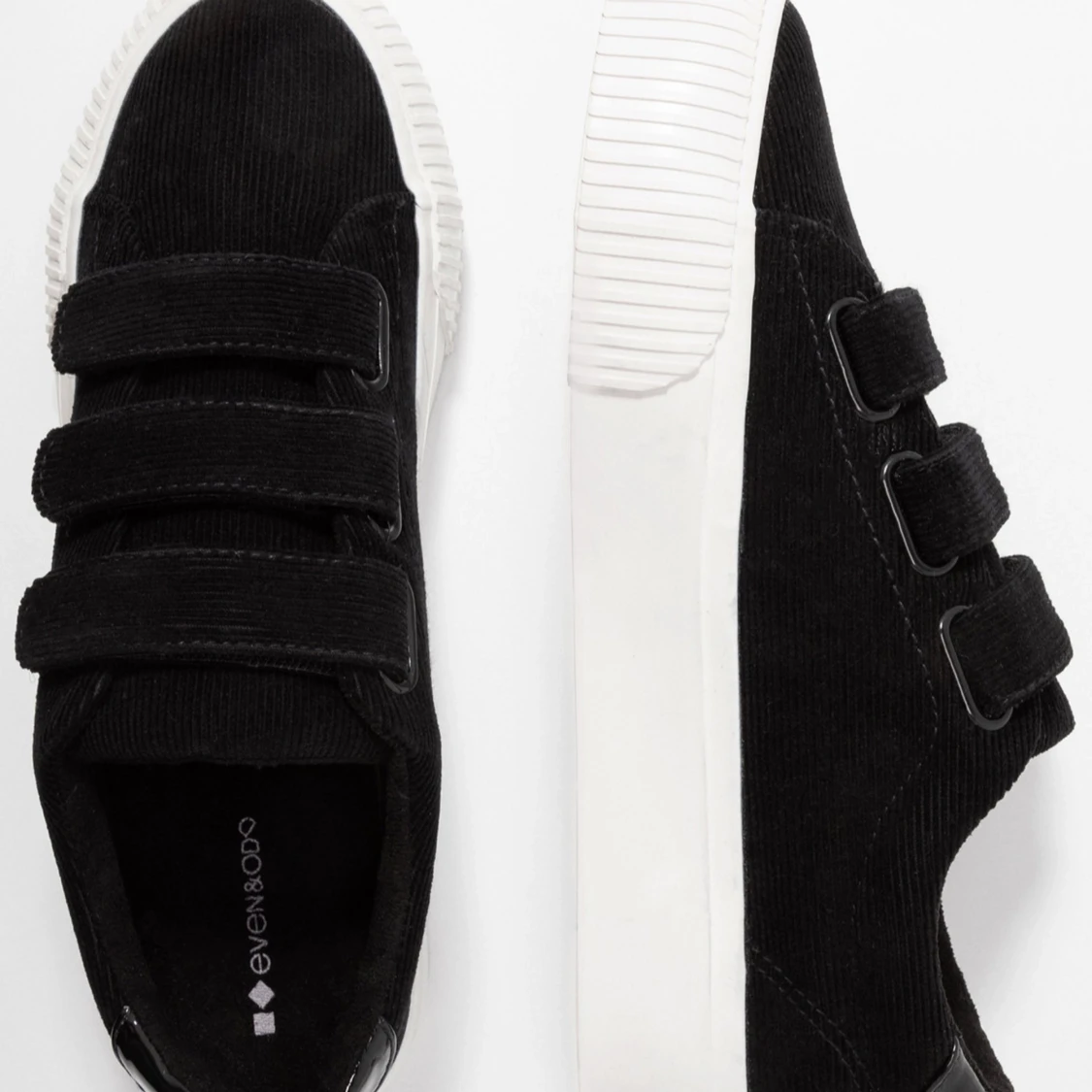 Stilrena svarta sneakers från Even&Odd med praktiska kardborreband och vit sula. Perfekta för en avslappnad look.