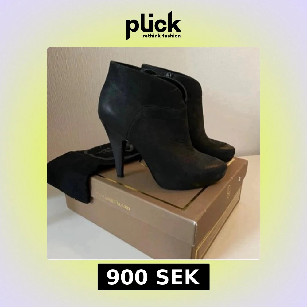 Snygga svarta stövletter från italienska ASH med spetsig tå och hög klack. Skorna är tillverkade i skinn och har dragkedja på sidan för enkel på- och avtagning. Perfekt för dig som gillar stilrena och eleganta boots med lite edge. Skorna är använda max 2 ggr men finns lite märken. Zooma in nosen och klacken. Mycket dyr inköp